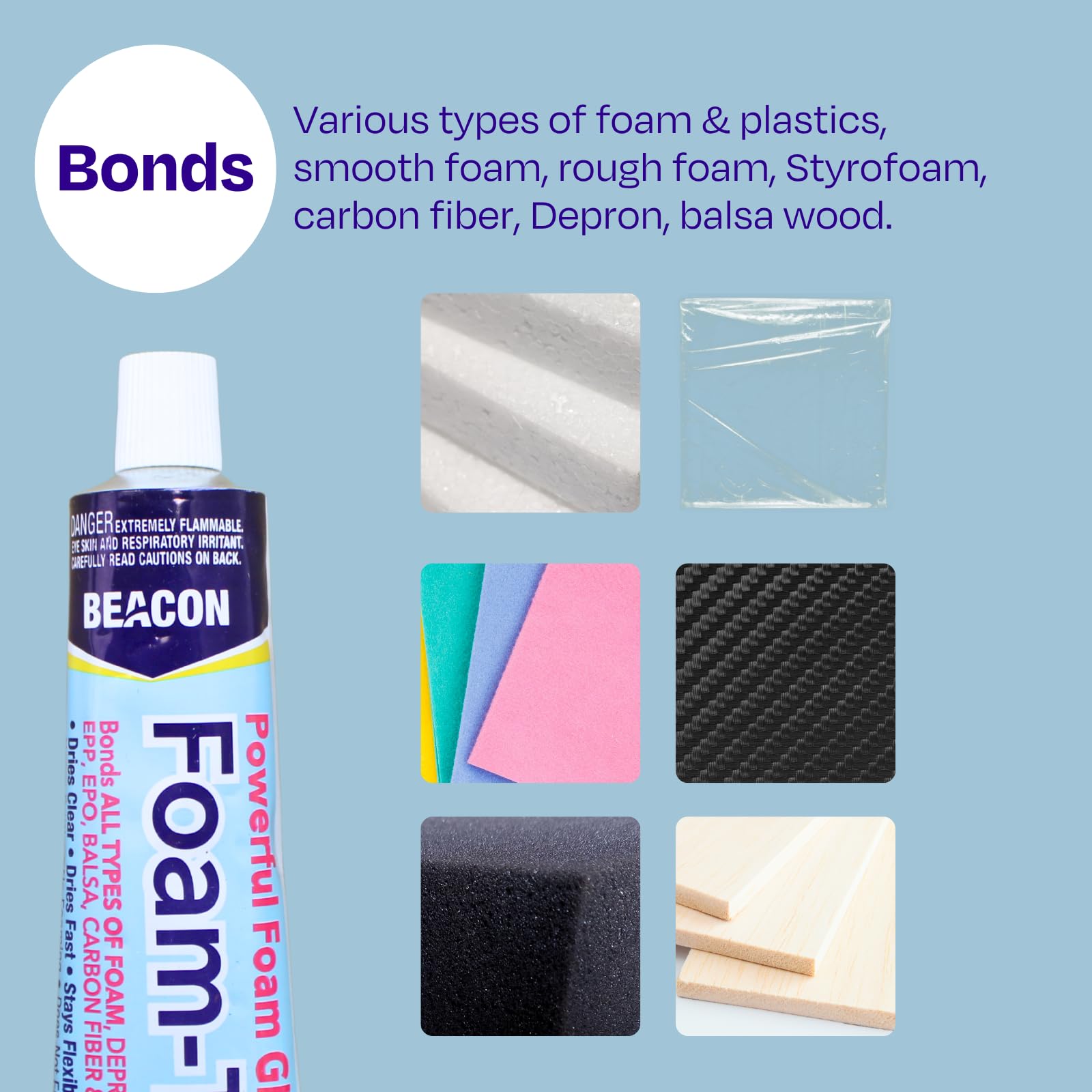 - Foam-Tac is perfect for use with a variety of materials, such as EPP, EPO, DEPRON foam, balsa wood, carbon fiber, and 3D printed parts. This adaptability makes it accessible for a wide range of projects.