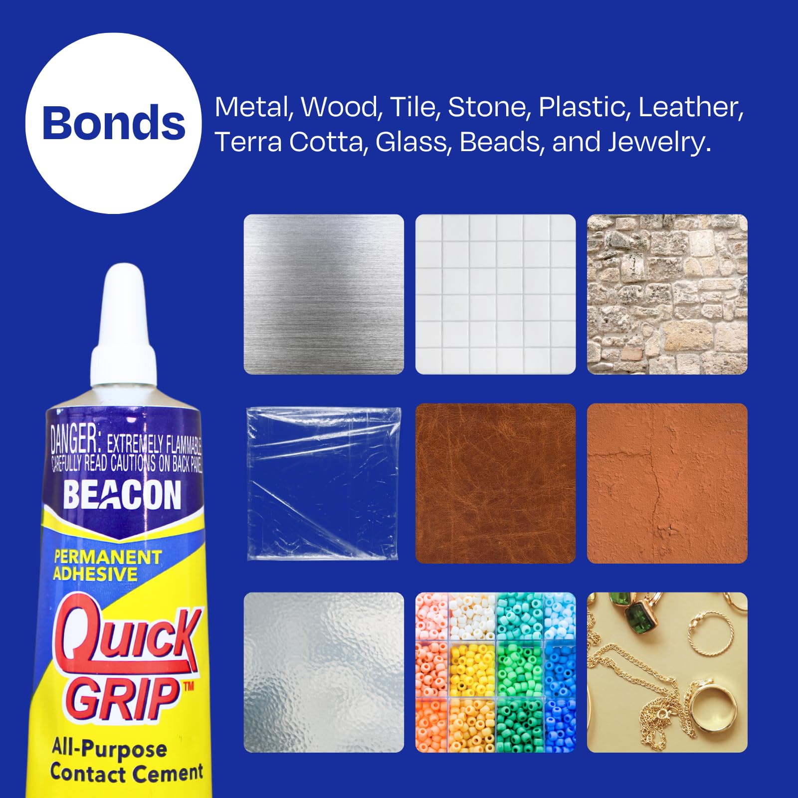 - Quick Grip - a super strong, quick-action adhesive, outperforms the average super glue and is perfect for numerous indoor and outdoor projects.